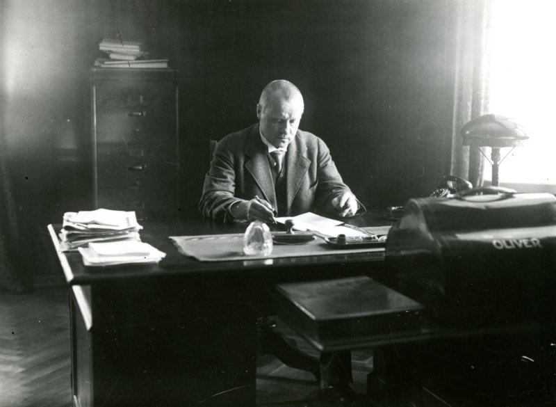 Väinö työhuoneessaan Osuusliike Elannossa Helsingissä 1930-luvulla. Työväen Arkisto.