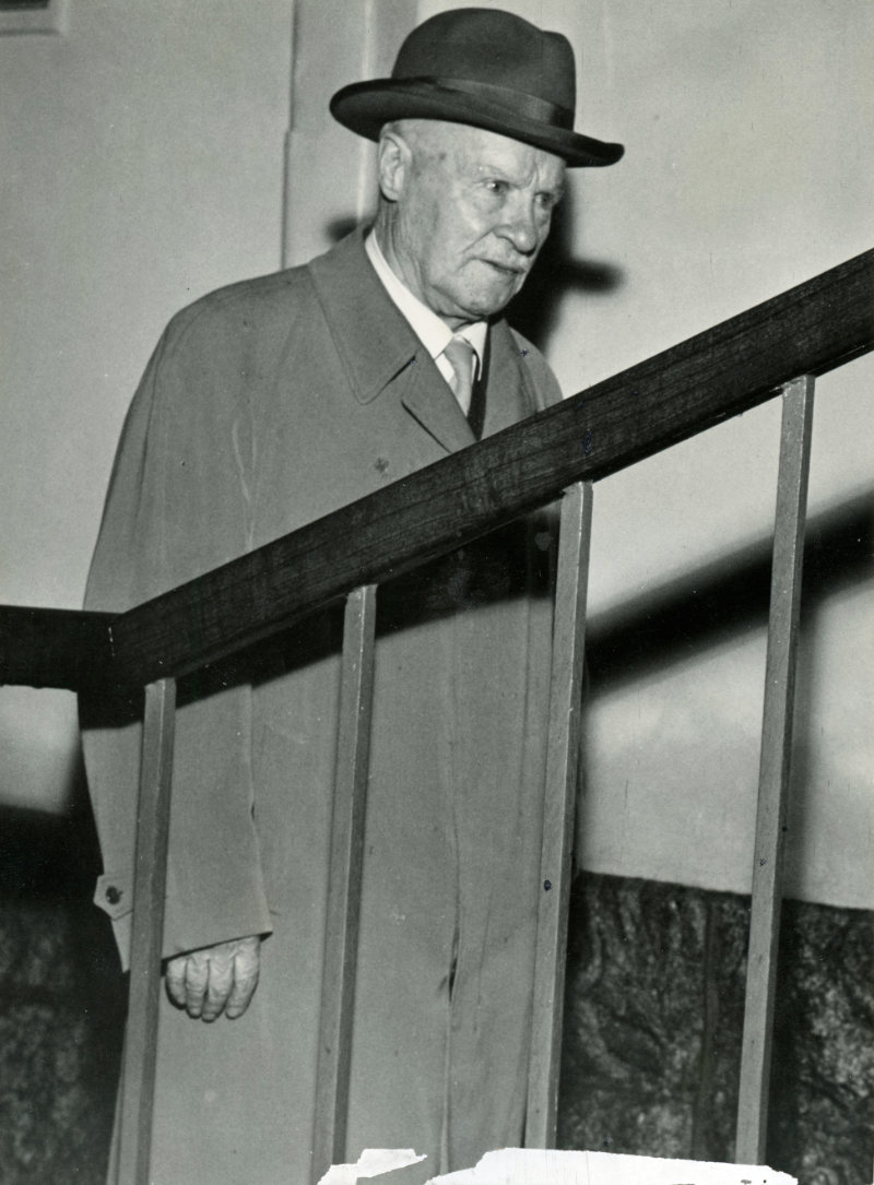 Väinö 23.10.1957 matkalla tasavallan presidentti Urho Kekkosen luo, jonne hänet oli kutsuttu Suomen Sosialidemokraattisen puolueen (SDP) nimitettyä hänet samana päivänä pääministeriehdokkaakseen. Käynnin seurauksena Tanner lupautui suorittamaan tunnusteluja hallituskysymyksen ratkaisemiseksi SDP:n esityksen mukaisesti sekä ilmoittamaan tunnustelujen tulokset aikanaan tasavallan presidentille. Työväen Arkisto.