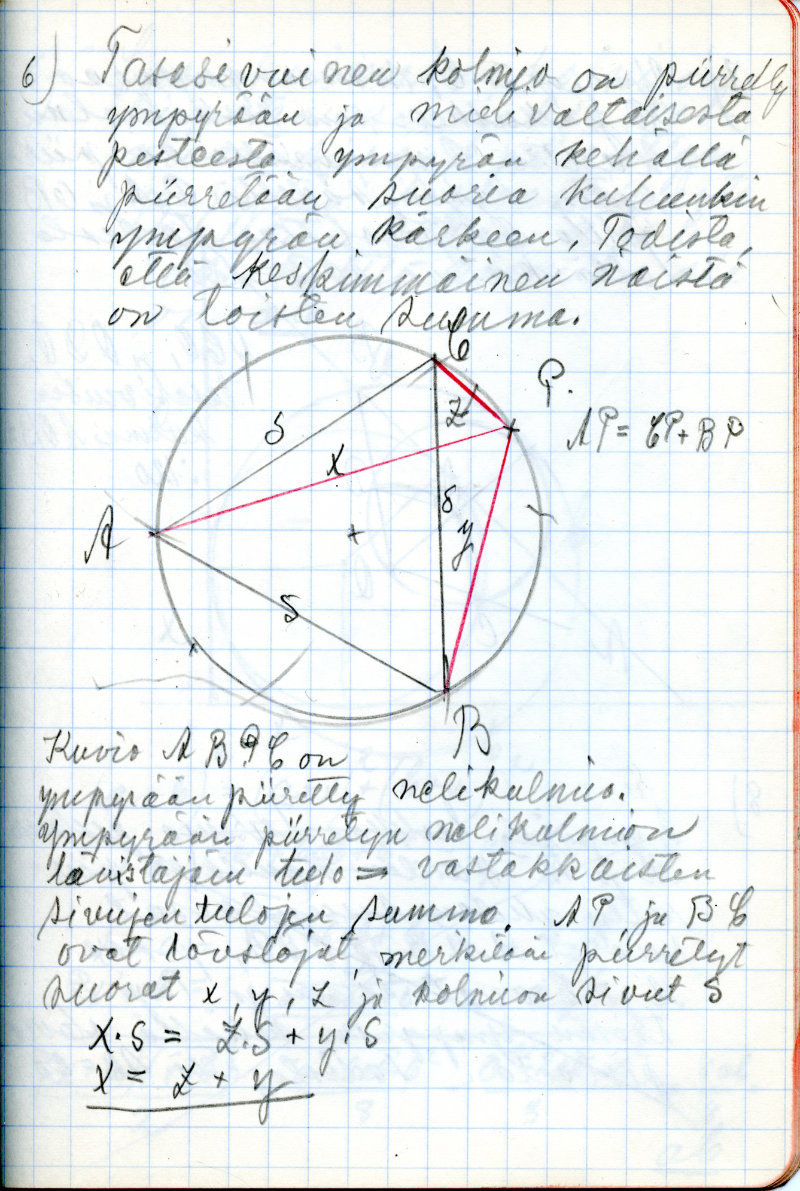 Linda opiskeli yliopistossa mm. matematiikkaa ja fysiikkaa - aineita, jotka 1900-luvun alussa eivät olleet naisille kovin tyypillisiä. Myöhemmin, jo 39-vuotiaana kuuden lapsen äitinä, Linda kirjoittautui vielä uudelleen yliopistoon opiskelemaan kemiaa. Kemian opinnoista oli nimittäin käytännön hyötyä puutarhan- ja metsänhoidon sekä maanviljelyksen kehittämistyössä. Myös aiemmin saadusta matematiikan opettajan koulutuksesta oli oma hyötynsä, vaikkei Linda koskaan opettajan uralle lähtenytkään: maatilalla Sorkissa Linda nimittäin piti lapsenlapsilleen ja naapuruston lapsille useat vuodet kesäyliopistoa. Kuvassa sivu Lindan matematiikanvihosta. Ajankohtaa ei tiedossa. Työväen Arkisto.